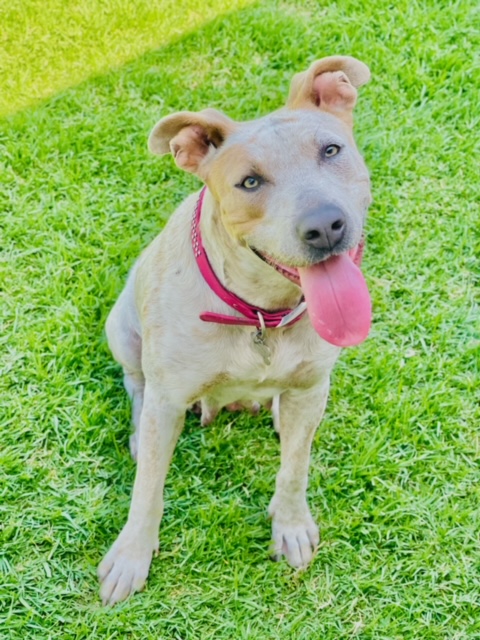 Sandy is a 1-year-old super-loving female pup. She wants to be friends with every big dog, little dog, and cat as long as they are okay with her. If not, she will give them their space. Sandy likes to be part of the action and is always very curious to see what everyone is doing and what everything is. You can clearly state, that she has a big case of the ‘Fear Of Missing Out’. She’s calm inside the house but once in the yard, she runs her daily zoomies to provoke someone to chase her or to chase critters coming into her yard. Sandy’s still learning how to be a dog so she’s working on walking on a leash because she never had a walk but learning pretty fast. She is eager to please and is happy to get positive praise and reinforcement for her good work. She’s submissive and shy at first but warms up pretty quickly to everyone around her.